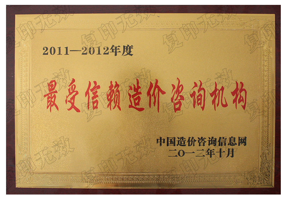 先后榮獲中價協(xié)AAA信用企業(yè),陜價協(xié)副理事單位,連續(xù)八年榮獲陜西省工程造價咨詢20強/30強,傲人的成績來源于行業(yè)的高度認可。